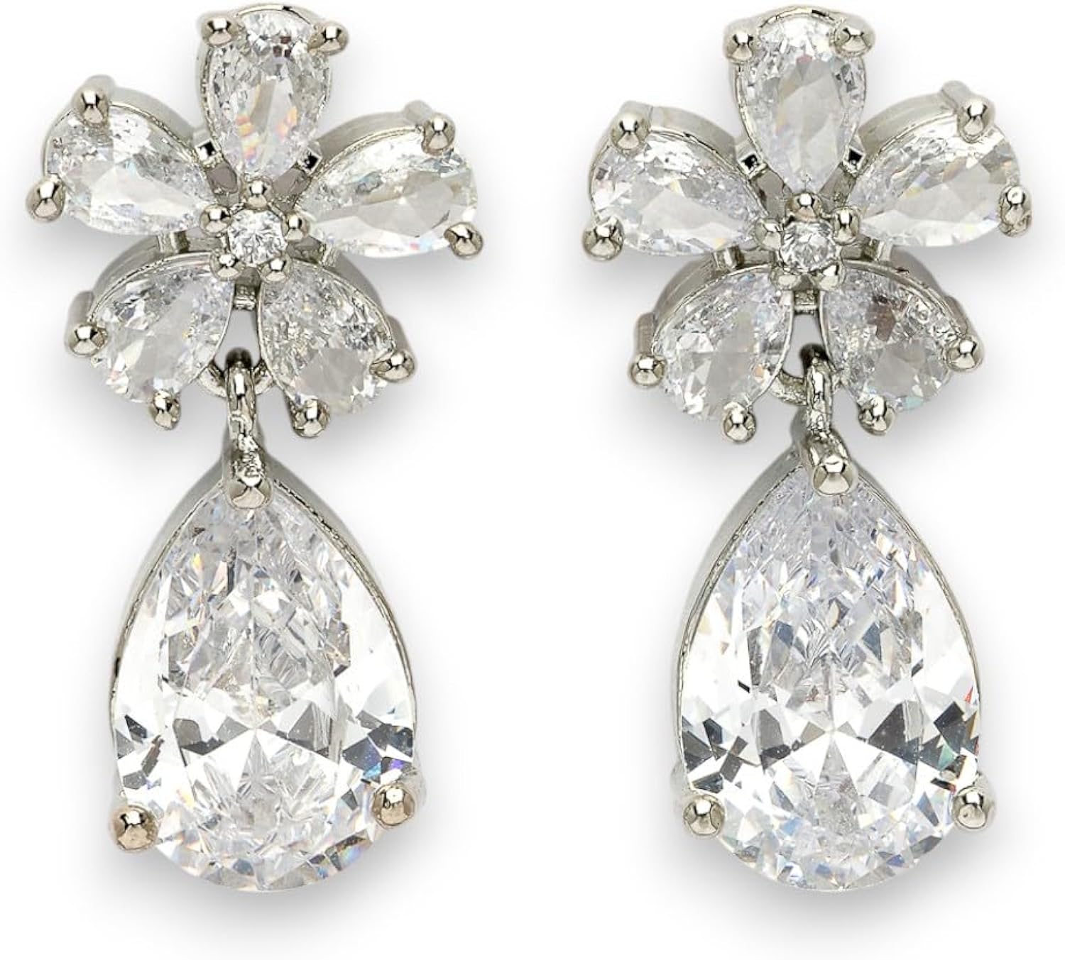 Harinika Silver‑Plated Floral Stone Drop Earrings— Elegant Floral Alloy Earrings for Women & Girls